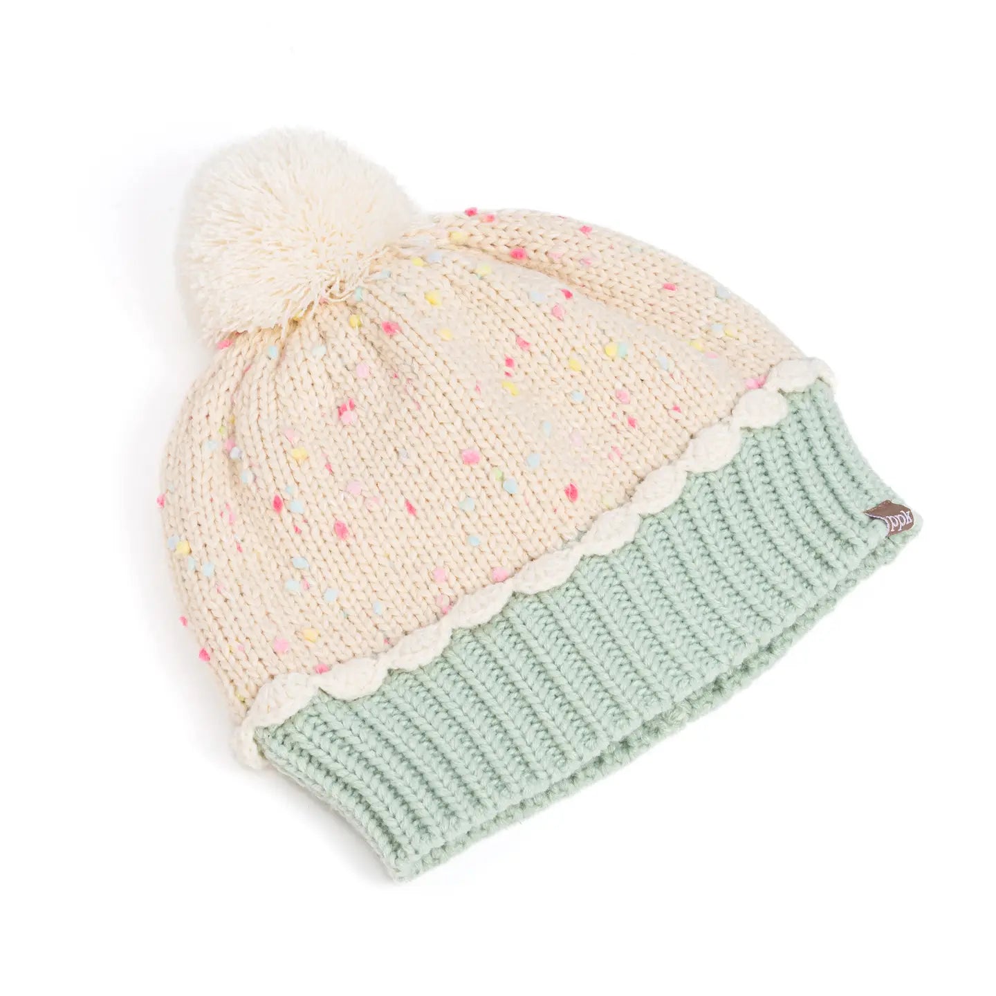 As cute as a cupcake! We love the interplay of soft creamy pastels and textures on this playful style. The hat is fully lined with soft fleece for seasonal comfort and coordinates well with many of our mittens and scarves. This style is offered across all children's sizes. Comes the seasonal holidays, we hope this fun hat sells like cakes!