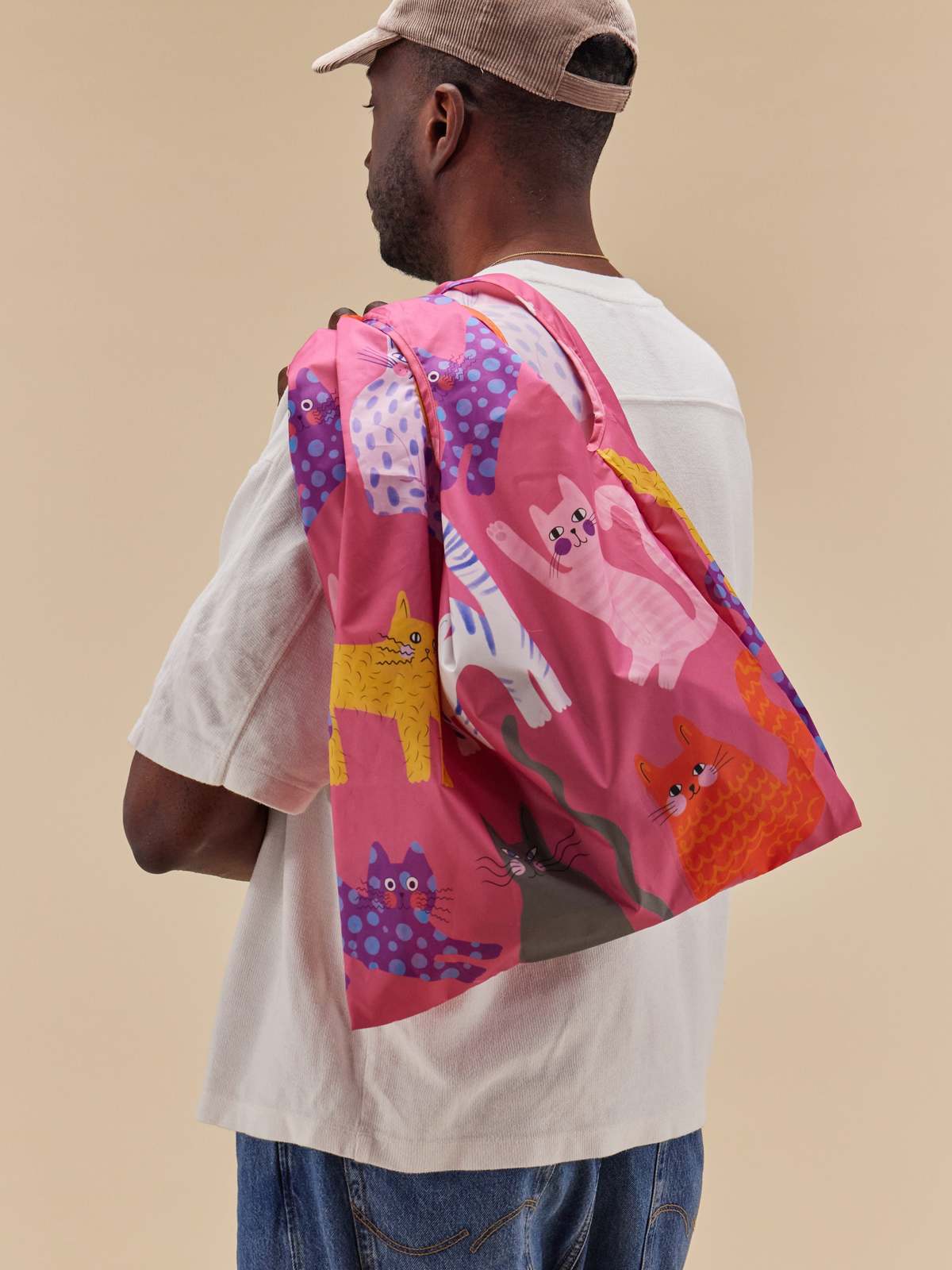 Lightweight, compact, foldable, larger than Baggu and basic tote bags.