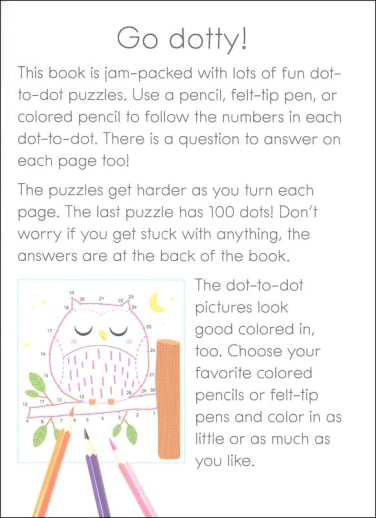 Young learners will enjoy tracing over dots, connecting them, and revealing a colorful picture. Get them thinking, writing, counting, and laughing as they take on each brain-teasing challenge. It offers hours of age-appropriate fun to kids that are just starting to enjoy problem solving and finding answers independently.