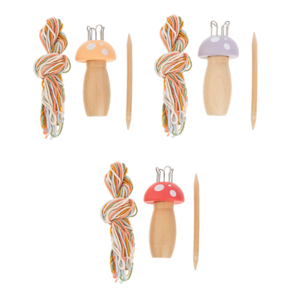 Add charm and functionality to your knitting with these Wooden Knitting Mushrooms. Standing 5 1/2" tall and available in vibrant orange, purple, and red, they serve as both beautiful stitch holders and decorative tools. Crafted from smooth wood, they provide a comfortable grip while enhancing your crafting experience. Perfect for knitters who appreciate quality and style in their accessories.