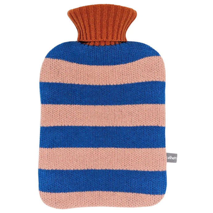 Lambswool Hot Water Bottle Covers & Bottles - Blue/Pink Sripe
