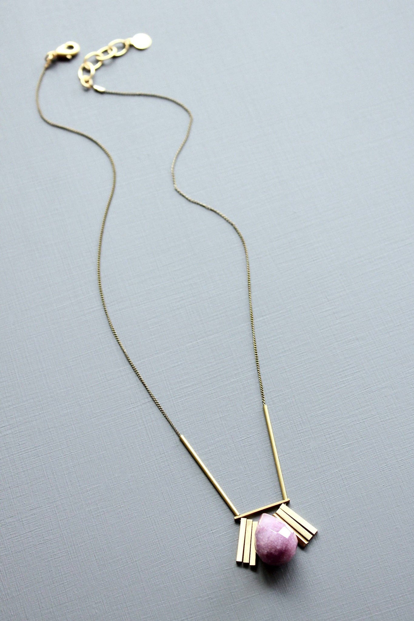 18” necklace with oxidized brass chain and purple dyed jade pendant. 1 inch extender.