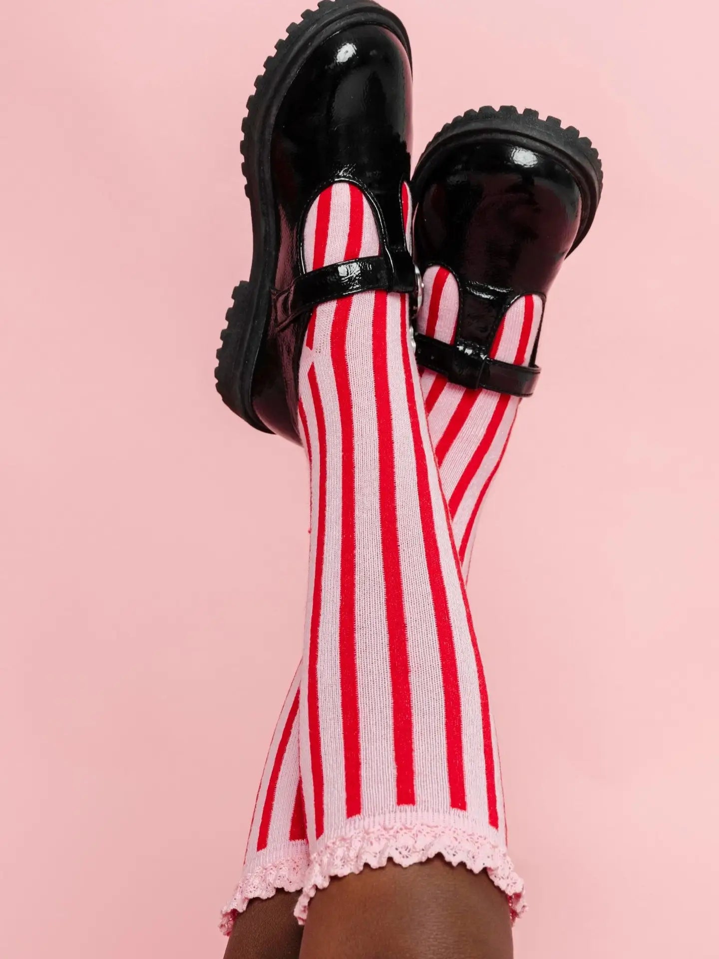Candy Stripe Lace Top Knee High Socks