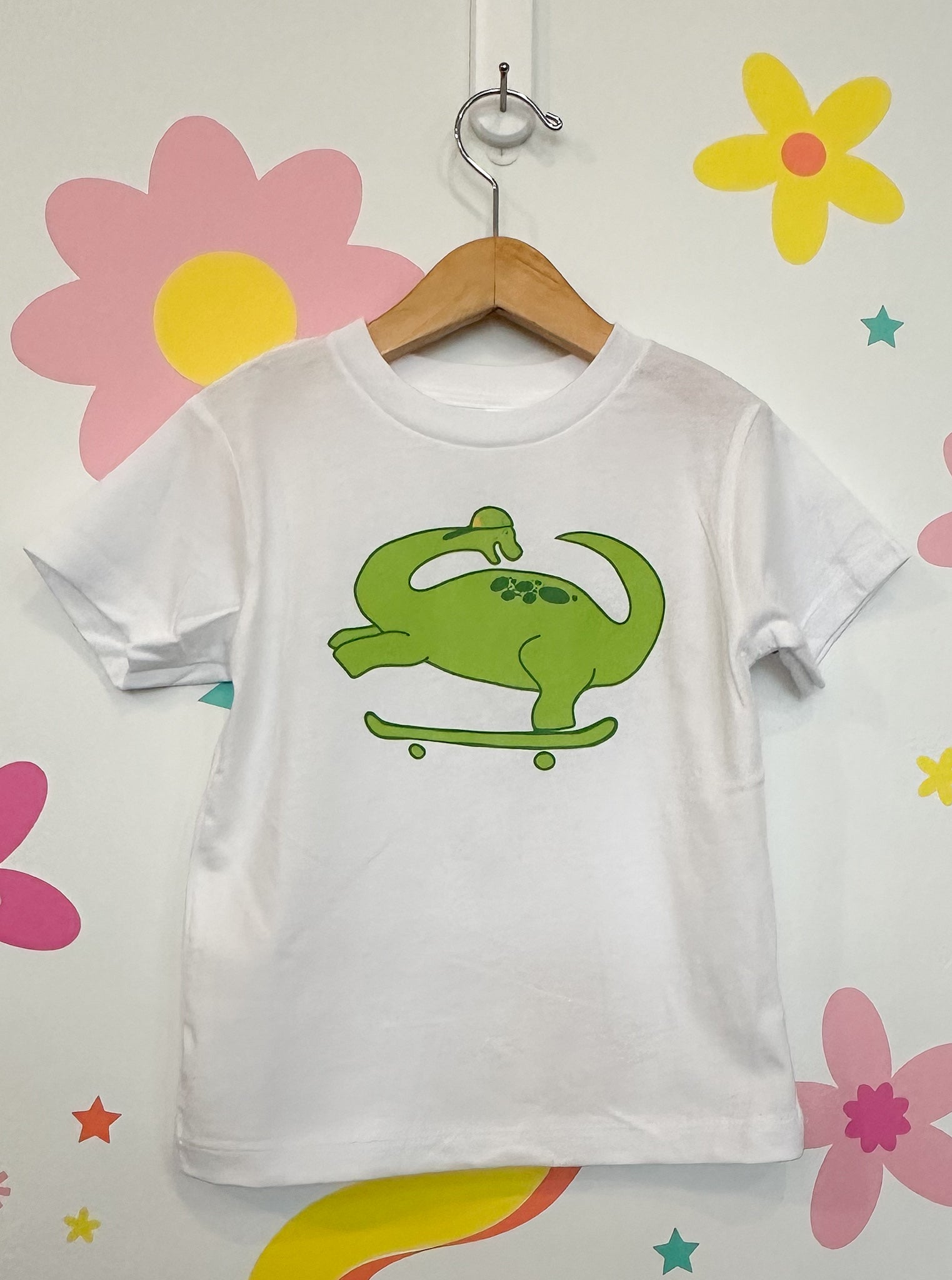 This super soft shirt is perfect for every day play. Dino drawn and hand transferred right here in Oakland! On Bella and Canvas airlume jersey.
