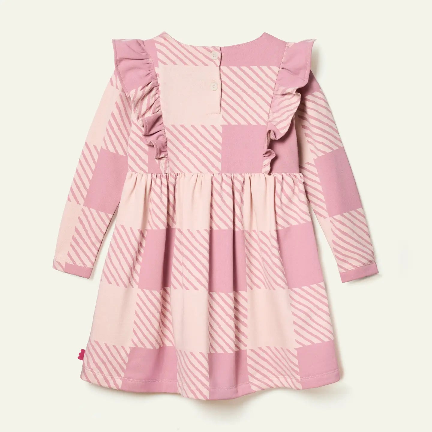 Mon Coeur presents the Recycled Cotton Buffalo Check Ruffle Dress, a perfect embodiment of our commitment to eco-friendly, stylish, and comfortable kids' clothing. This dress, spun from reclaimed organic cotton fiber, is soft, cozy, and designed with a playful ruffle detail that your little ones will love. Our garments are thoughtfully made, right down to the last fiber, with the vision of a brighter, cleaner, and plastic-free future for our children. With Mon Coeur, your child isn't just wearing a dress, they're wearing our heart on their sleeve.