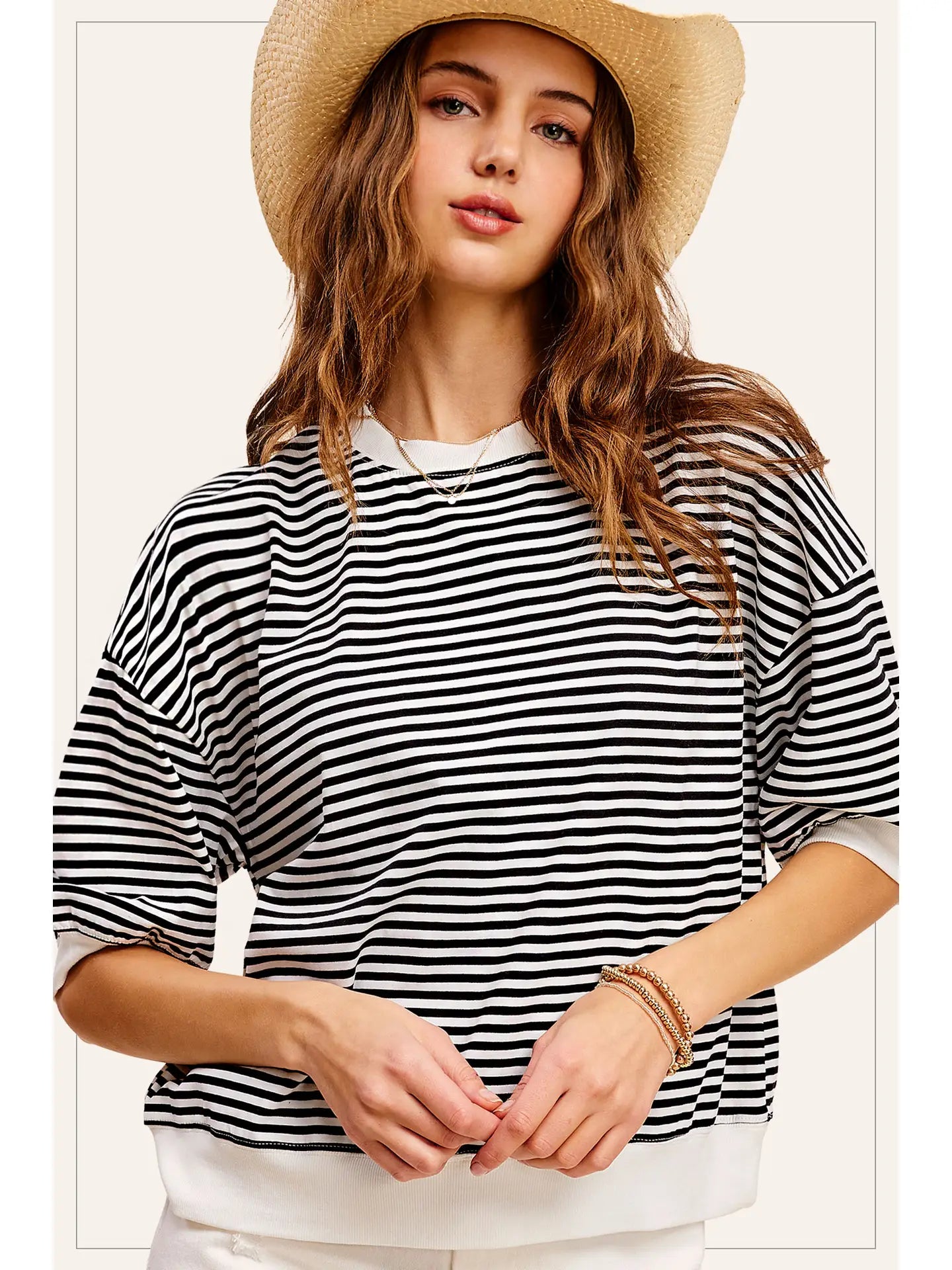 Tags: loose fit, short sleeve top, striped top, crew neckline, layering piece, loungewear, lightweight