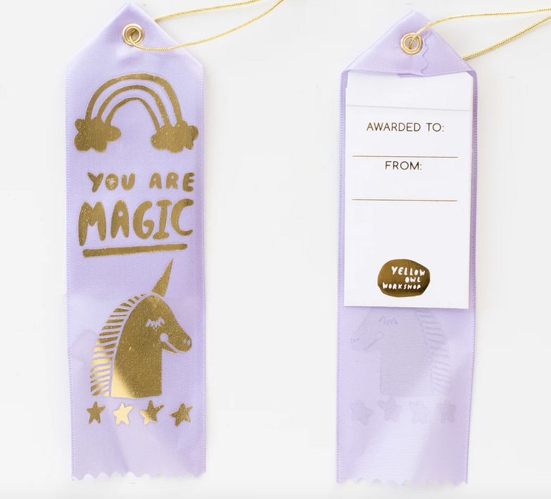 Our take on the classic award ribbon features luxe satin ribbon with a metallic cord, gold foil designs and a fold down note for your honorable mentions. 8" x 2" (20cm x 5cm) tags card cards stationary stationery