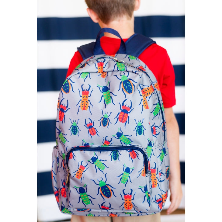 Whether this Backpack is for school or travel, it is the perfect combination of fun and functional! The adjustable, comfort fit, shoulder straps make this backpack super easy to carry and it is a breeze to find just the right place for everything in the large interior compartment and exterior pockets. Creepy, crawly, and oh-so-fun, the Buggy pattern features red, orange, green, and navy beetles on a grey background.