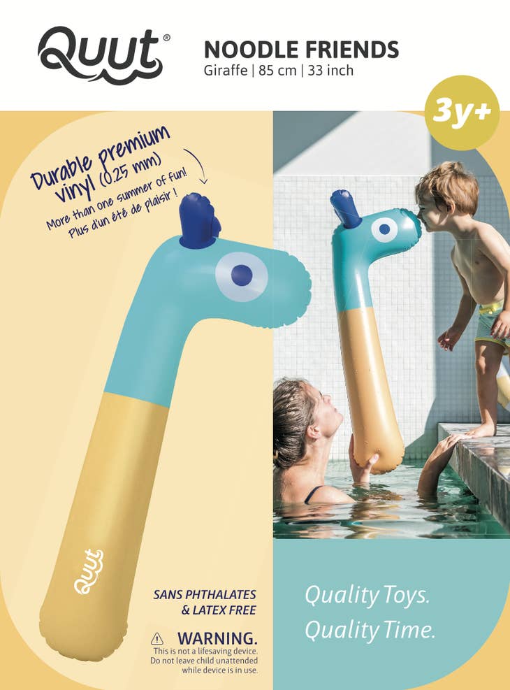 The noodle from Quut is easily inflatable and has a clean look with fun details. The pool toy can be used both in the water as well as on land as an inflatable horse. As with all products from Quut, the swim noodle will last for several years provided they are properly cared for.