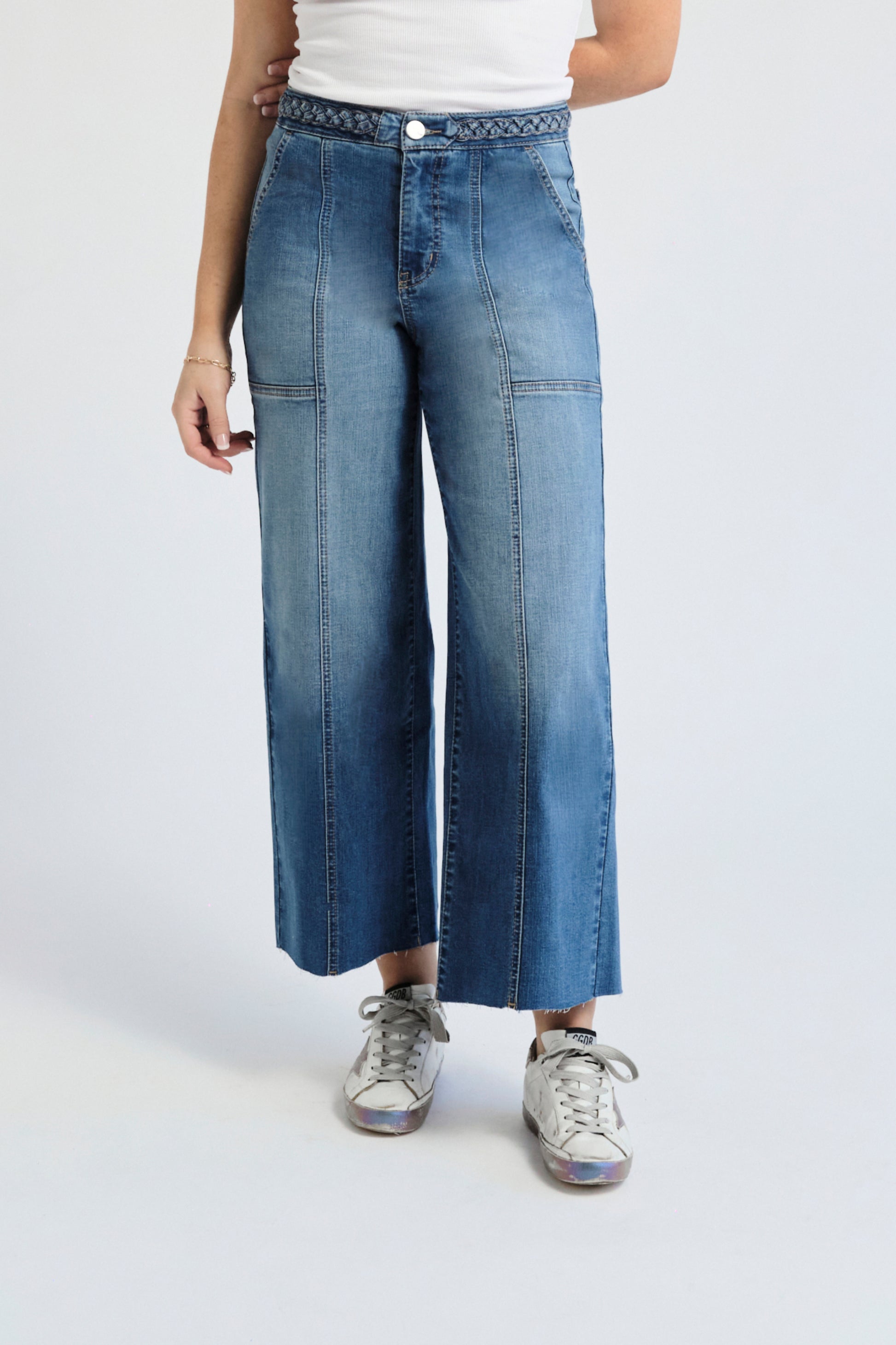 High Rise Wide Leg Braided Waistband Denim - Bolti