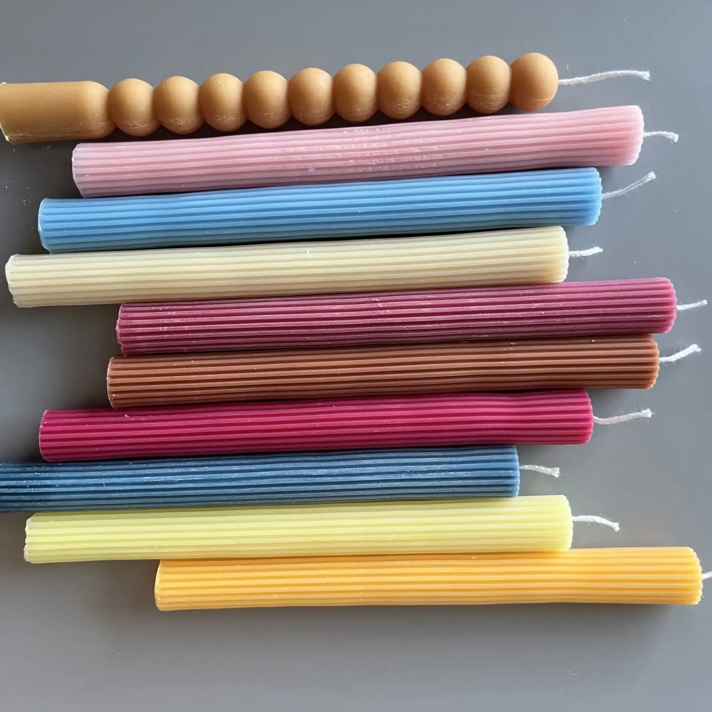 Lined Textured Candle - about 8 1/4" tall and the base is about 3/4" wide