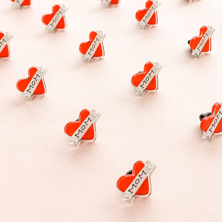 Includes: 1 Acrylic pin with Black Rubber Pin Back // Size: 1"x.75” // Packaging: Cardstock backer and sealed in cello sleeve.