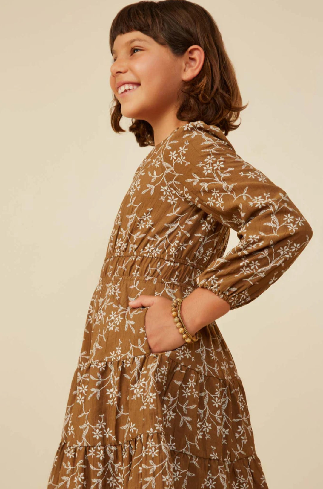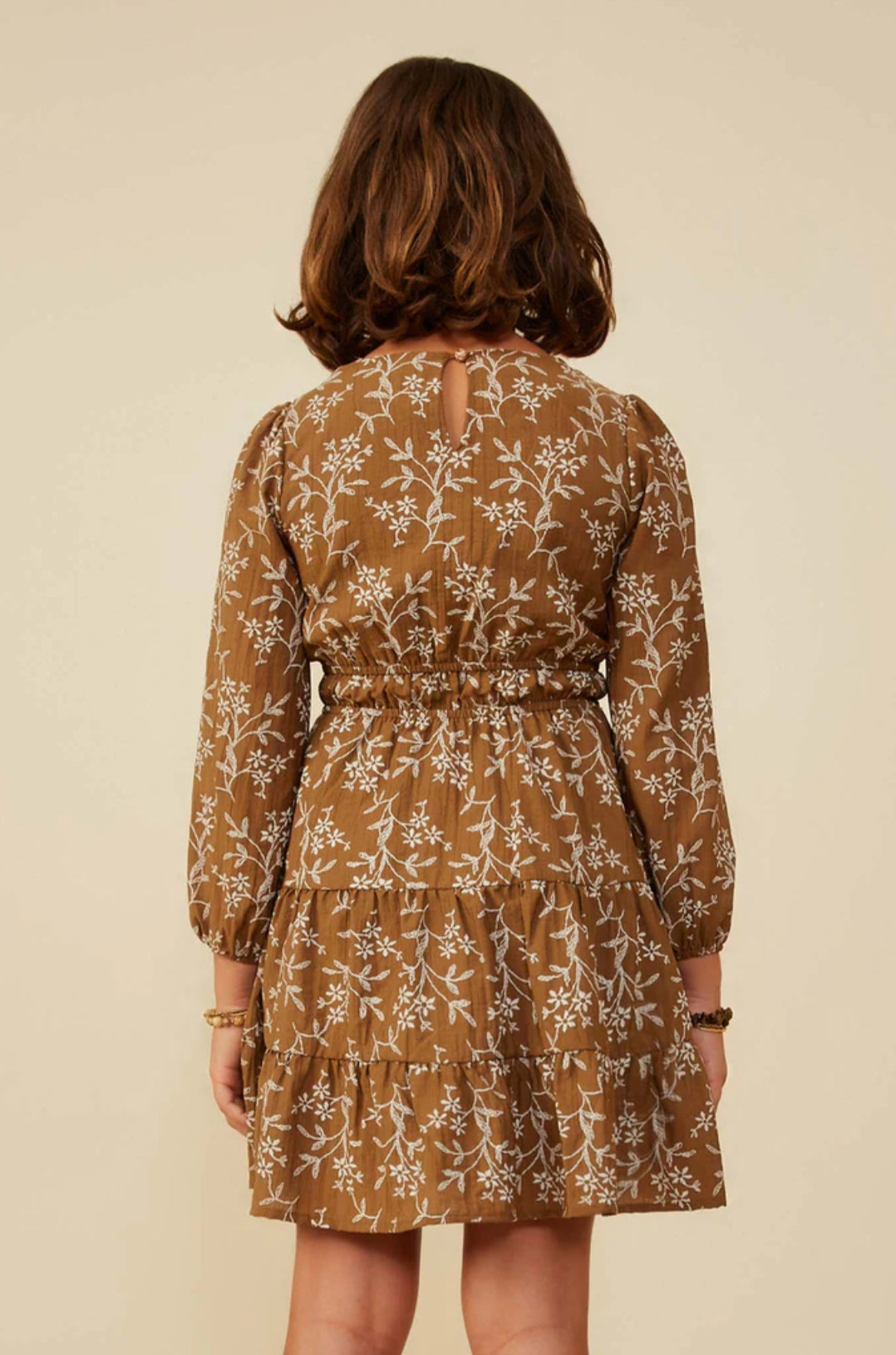Product Details:Our Notch Detail Long Sleeve Floral Embroidered Dress Features: