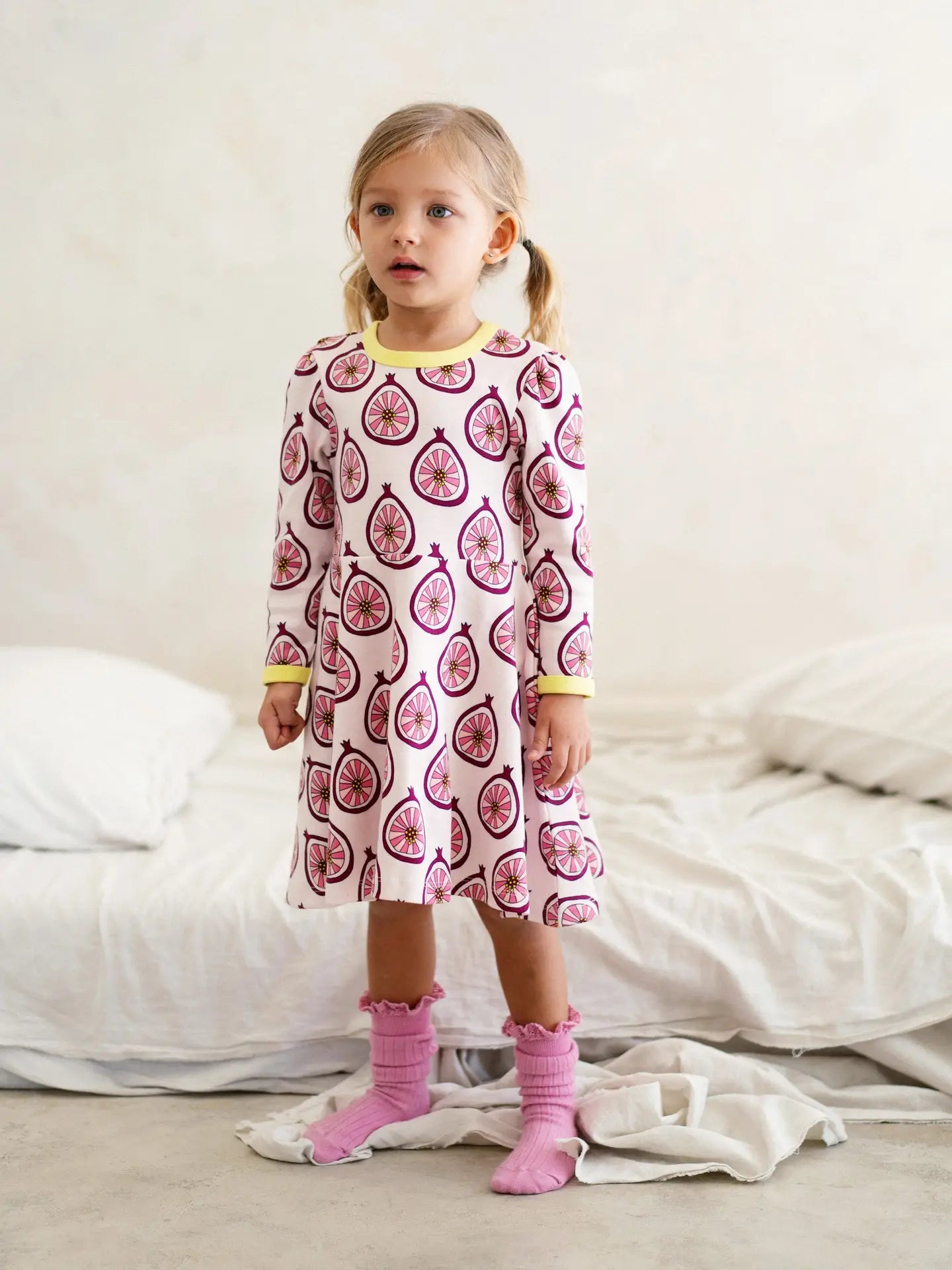 Made from 100% GOTS-certified organic cotton, this adorable long sleeve dress features soft, durable fabric with excellent stretch and breathability. Sturdy ribbed trims help it maintain its shape wear after wear, while the vibrant all-over graphic pattern adds a fun, unique touch. A matching bonnet in the same print is also available.