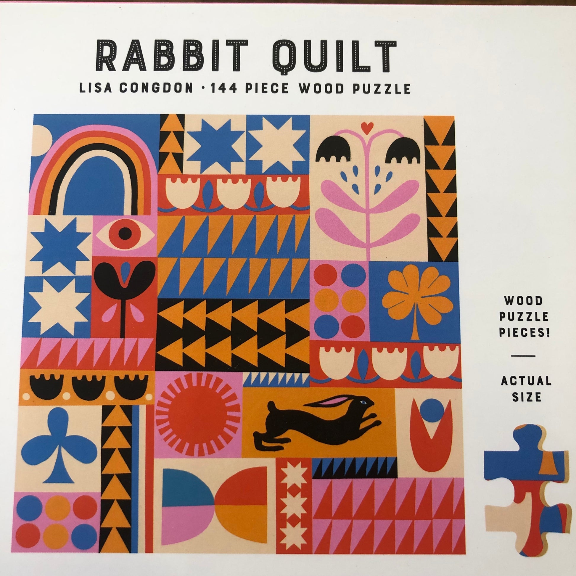 The Lisa Congdon Rabbit Quilt 144 Piece Wood Puzzle features the colorful artwork of Lisa Congdon who is best known for her colorful drawings and hand lettering. The author of 8 books, she has worked with many brands and companies, such as Commes des Gar& çons, MoMA, Harvard University, Crate and Barrel, and more. Galison puzzles are packaged in matte-finish sturdy boxes, perfect for gifting, reuse, and storage. An insert of the full puzzle image is also included.