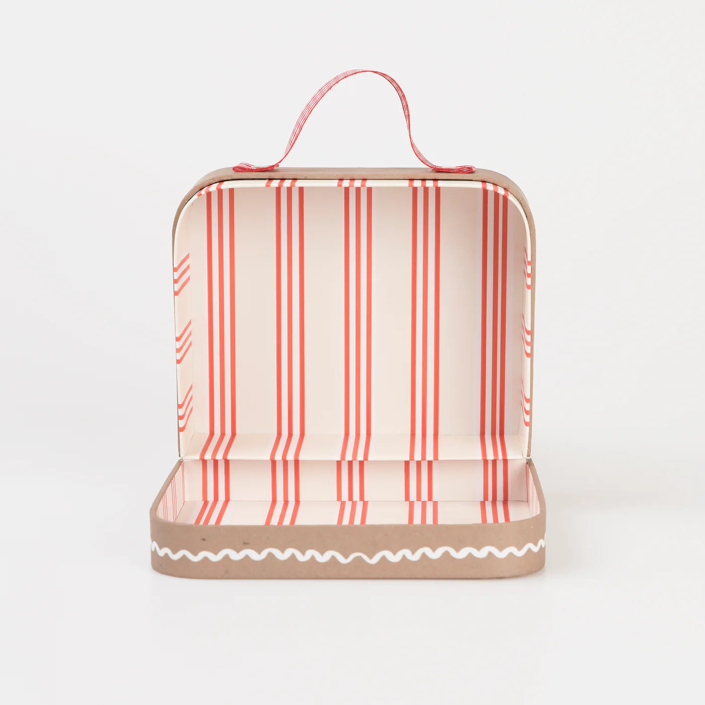 - Red and white gingham ribbon handle for the suitcase