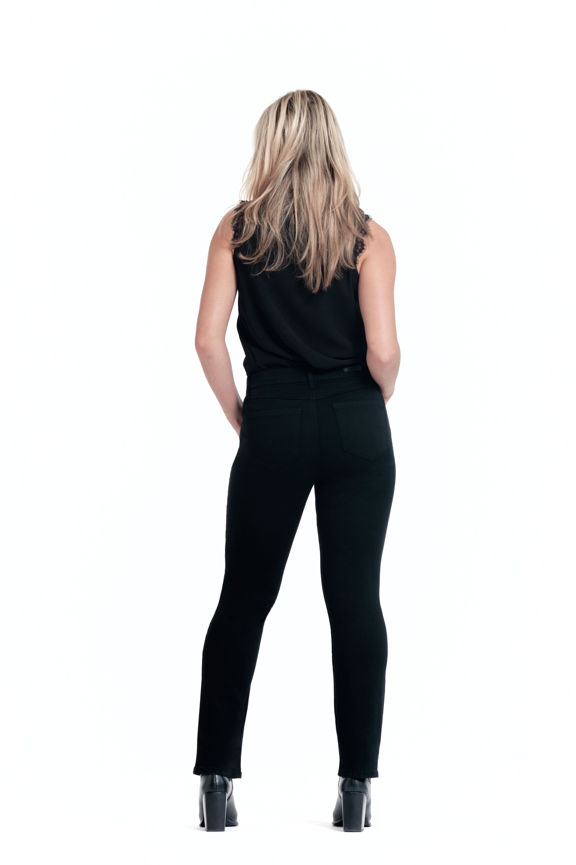 - Classic mid-rise slim straight jeans