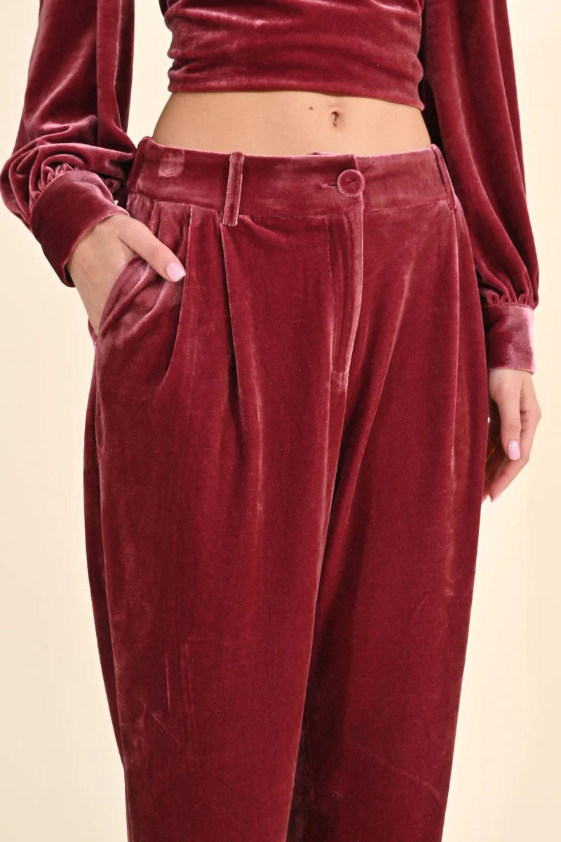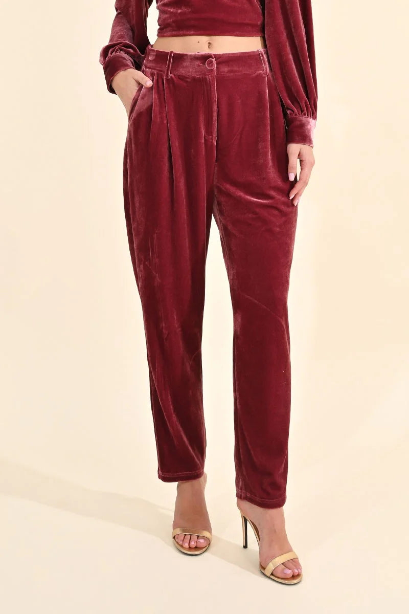 Velvet Cigarette Pants - Pink